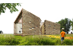 La �Flake House� est une folie en bois oubli�e au fond du jardin r�pondant aux exigences dimensionnelles du transport routier.