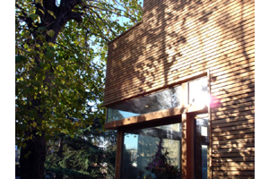Extension d'un pavillon sur un site remarquable en pr�sence d'un c�dre class�. L'extension est volontairement situ�e en fond de parcelle orient�e sud-ouest avec vue sur le c�dre. Le bois s'est impos� comme choix architectural. La nouvelle construction est en harmonie avec la nature environnante. Deux terrasses accentuent cette proximit�. L'entr�e donne sur un patio int�rieur qui s�pare l'existant de l'extension. Au rez-de-chauss�e une grande ouverture d'angle permet d'agrandir le volume de la pi�ce � vivre sur la terrasse.