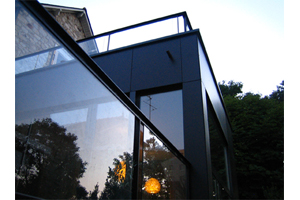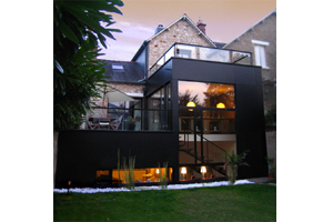 Ce projet, invisible depuis la rue, est un v�ritable � entre deux�. Il permet une meilleure communication entre, les espaces de vie, situ�s au niveau 1 et le jardin. Le volume est enti�rement praticable (toits terrasses), offrant ainsi un prolongement de l�int�rieur vers l�ext�rieur. En encastrant le projet de 75 cm nous mettons la tablette de bureau au niveau du sol ext�rieur. Cet ancrage permet l�habitabilit� de ces espaces et une plus grande communication, notamment visuelle, de l�individu et de son environnement v�g�tal. Ce petit �crin renferme en niveau haut, l�extension du salon et en niveau bas, un espace multim�dias biblioth�que, une chambre son dressing et sa salle de bain. Sa forme rationnelle permet l�optimisation hab& des r�glementations urbaines. L�extension insuffle une nouvelle vie � cette maison : dissociation de �l�espace parent� et de �l�espace enfant�, nouveaux usages et une r�elle ouverture sur l�ext�rieur.