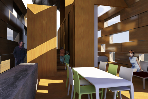 Finition int�rieure, murs p�riph�rique m�l�ze, autre surfaces, plancher et cloisonnement en OSB.