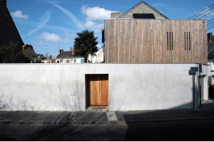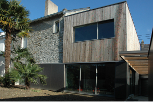 Extension d'une maison individuelle comprenant une chambre-bureau suppl�mentaire, un salon, un garage et des locaux annexes : chaufferie, cellier et local v�los. L'ensemble, volontairement introverti vue sa situation en milieu urbain, s'organise derri�re la r�interpr�tation du mur de cl�ture existant. Le garage-jardin d'hiver ouvert vers le ciel et en perspective sur le jardin, cr�e le lien int�rieur ext�rieur entre la maison et ses annexes. Des panneaux coulissants en panneaux composites permettent d'occulter le salon et recomposent une fa�ade du jardin int�rieur � la mani�re d'un patio. Le volume de la chambre �merge verticalement et affirme sa modernit� par son bardage de tasseaux bois.