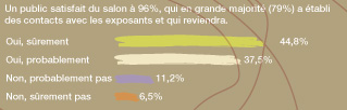 Un public satisfait du salon à 96%, qui en grande majorité (79%) a établi des contacts avec les exposants et qui reviendra : |