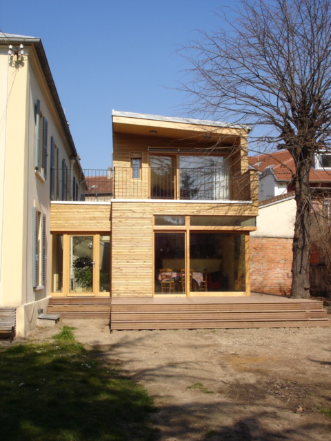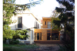 Extension d'un pavillon sur un site remarquable en pr�sence d'un c�dre class�. L'extension est volontairement situ�e en fond de parcelle orient�e sud-ouest avec vue sur le c�dre. Le bois s'est impos� comme choix architectural. La nouvelle construction est en harmonie avec la nature environnante. Deux terrasses accentuent cette proximit�. L'entr�e donne sur un patio int�rieur qui s�pare l'existant de l'extension. Au rez-de-chauss�e une grande ouverture d'angle permet d'agrandir le volume de la pi�ce � vivre sur la terrasse.