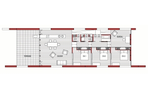 Finition int�rieure, murs p�riph�rique m�l�ze, autre surfaces, plancher et cloisonnement en OSB.