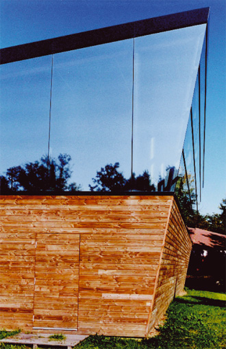 Matériaux : structure métallique, mur à ossature bois en douglass (structure et bardage), contre-plaqué en hêtre en fi nition intérieure, charpente en bois lamelé-collé.