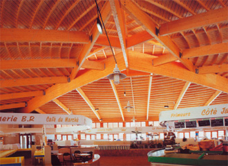 ossature et charpente en lamellé-collé de douglas,toiture en cuivre